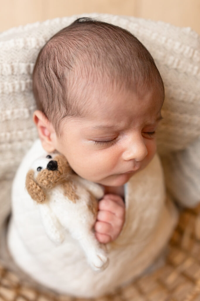 If you would prefer a photo without baskets or wraps and opt to keep the baby in an outfit, our session will be a little shorter since we won’t have to change the baby as much! I’ve taken newborn photography classes and wrapping classes, so you can rest assured that your baby is safe and comfortable in their wrap.